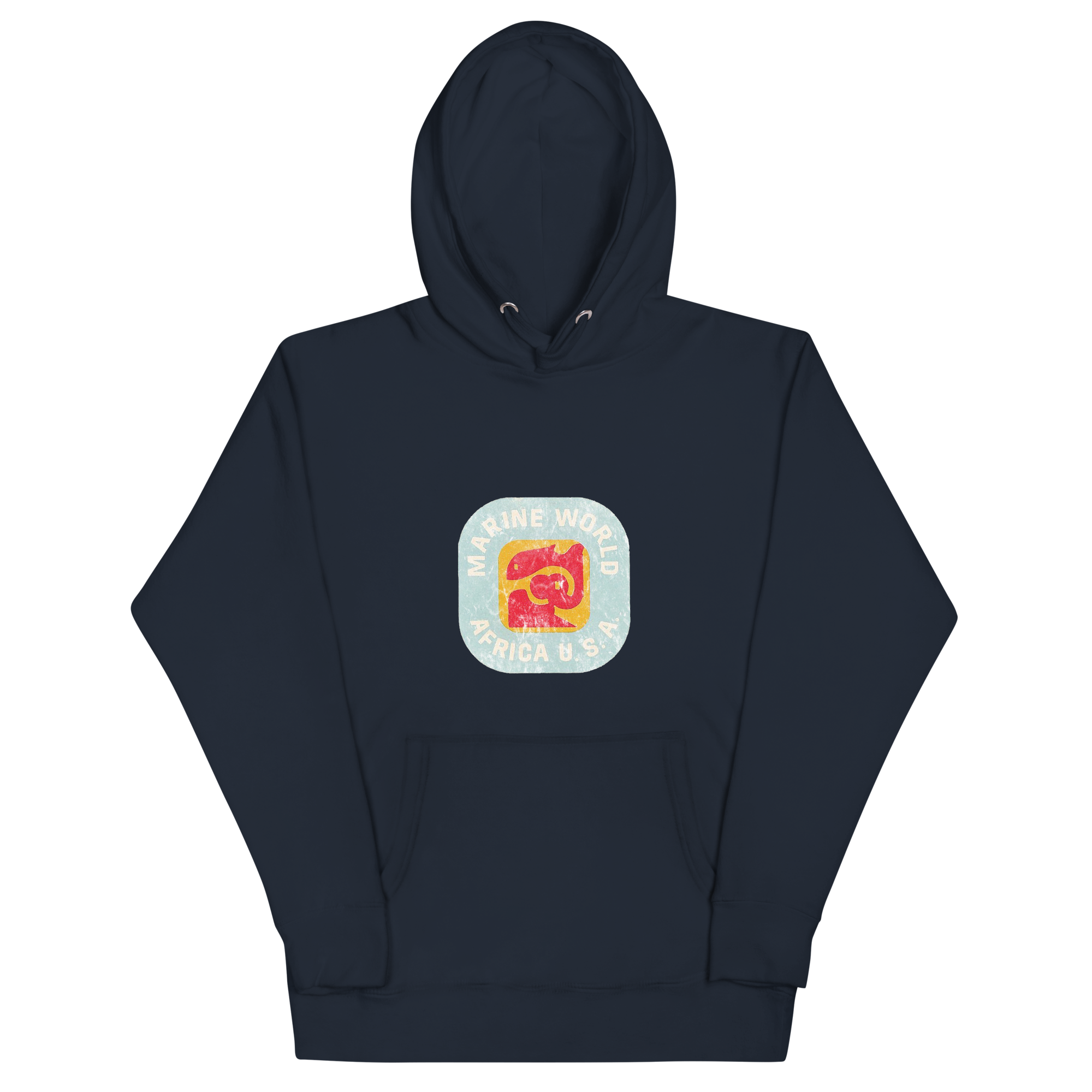 If you’re a local old schooler, you’ll remember the original Marine World Africa USA park in Redwood City, CA! Show yout local love this with an extra warm, soft hoodie featuring the original logo!