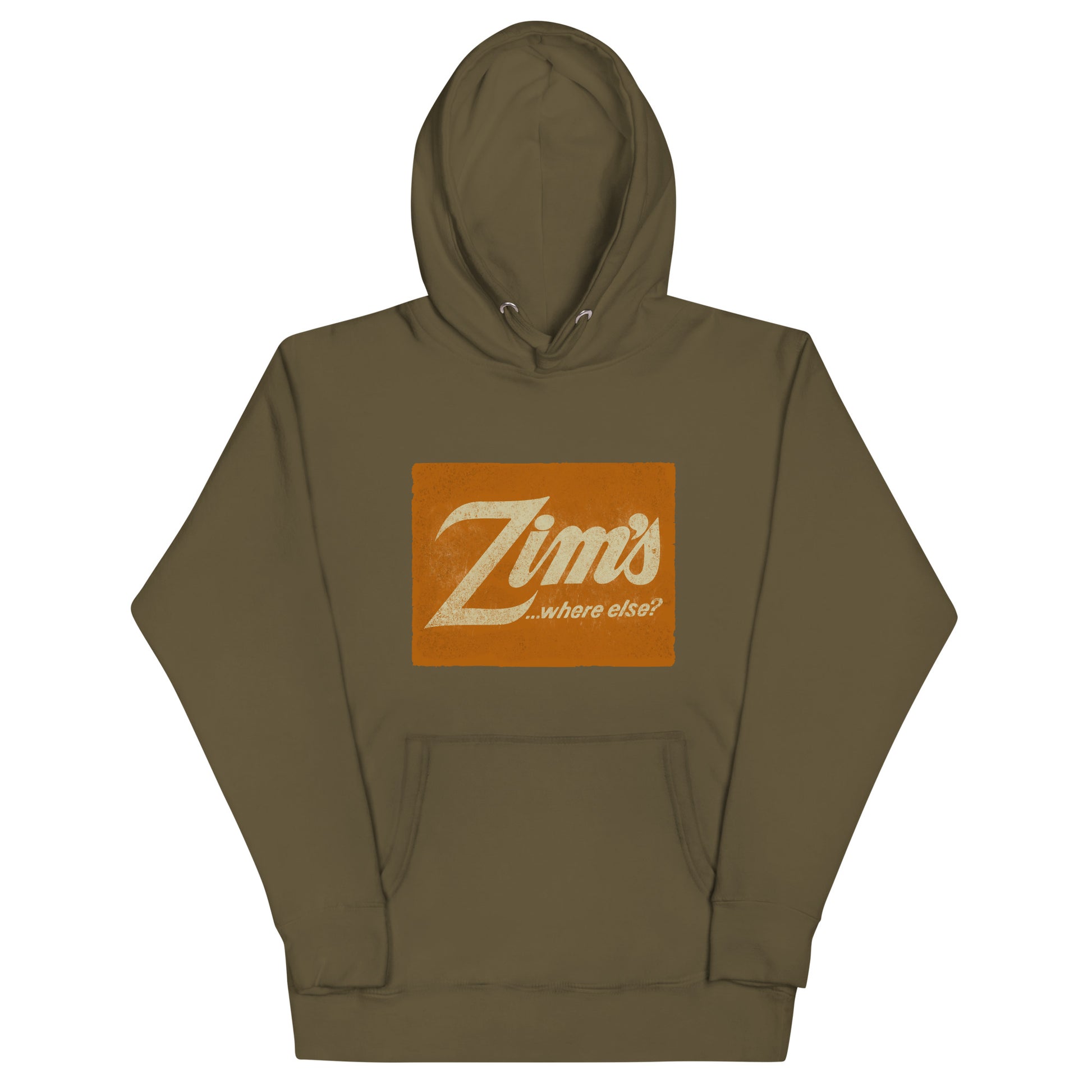 Old School Bay Area locals loved ZIm's in San Francisco for almost 50 years! Commemorate their delicious legacy with this soft, stylish hoodie for mean and women! • 100% cotton face • 65% ring-spun cotton, 35% polyester • Front pouch pocket • Self-fabric patch on the back • Matching flat drawstrings • 3-panel hood Disclaimer: This hoodie runs small. For the perfect fit, we recommend ordering one size larger than your usual size. -