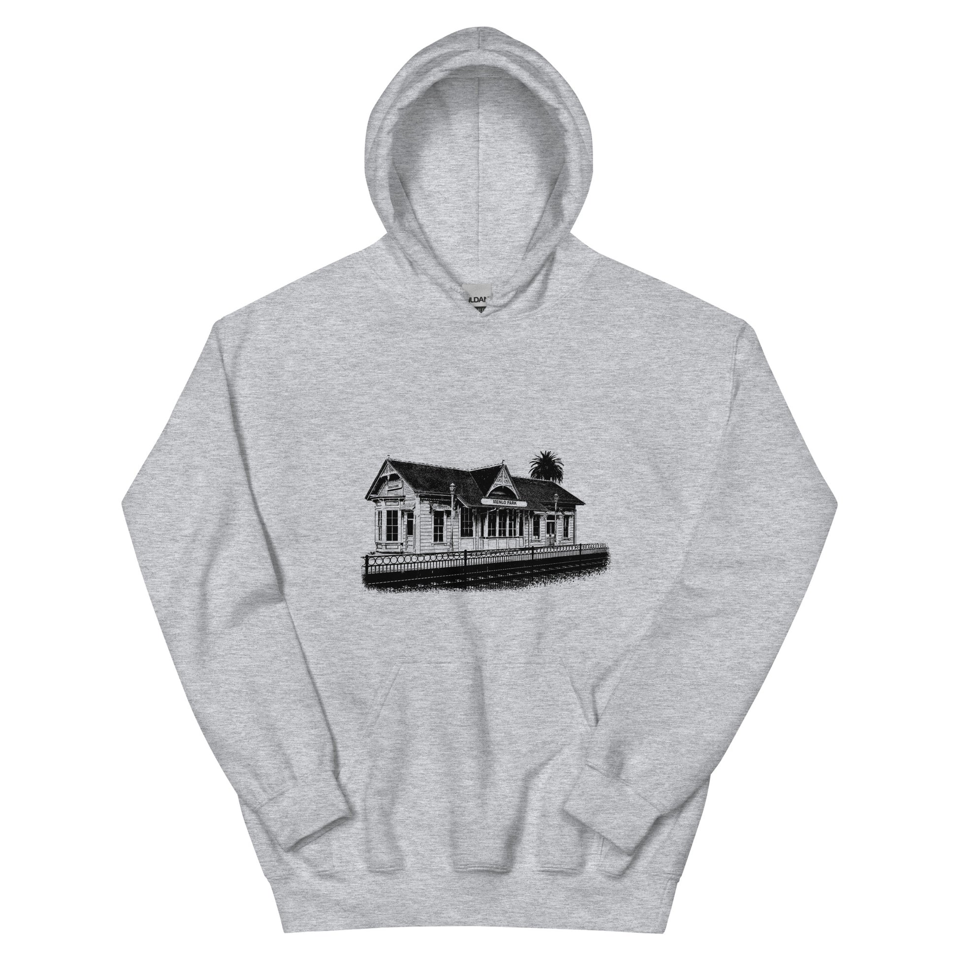 The historic Menlo Park Train Depot is beautiful and sure to look good on you! Part of our architectural series, this hooded sweatshirt is sylish and comfortable for both men and women!
